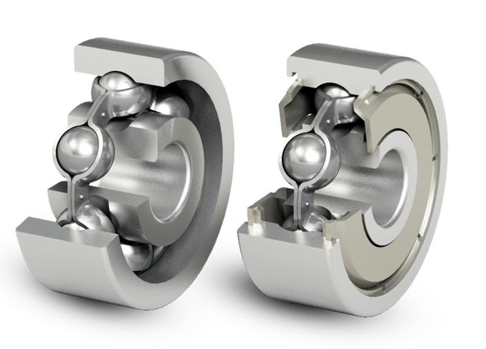 Miniature bearings are available open or sealed with rubber seals “RS” or metal shields “Z”. Cages are available in sheet-steel, fiber-reinforced plastic and special phenolic material designed for high speed applications.